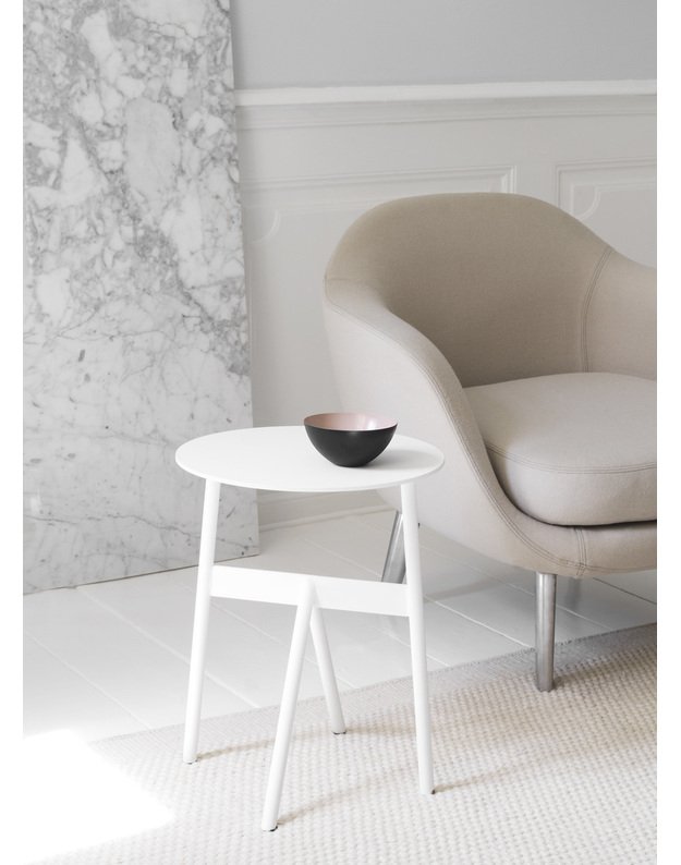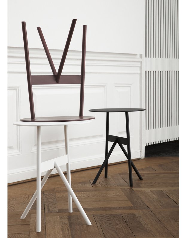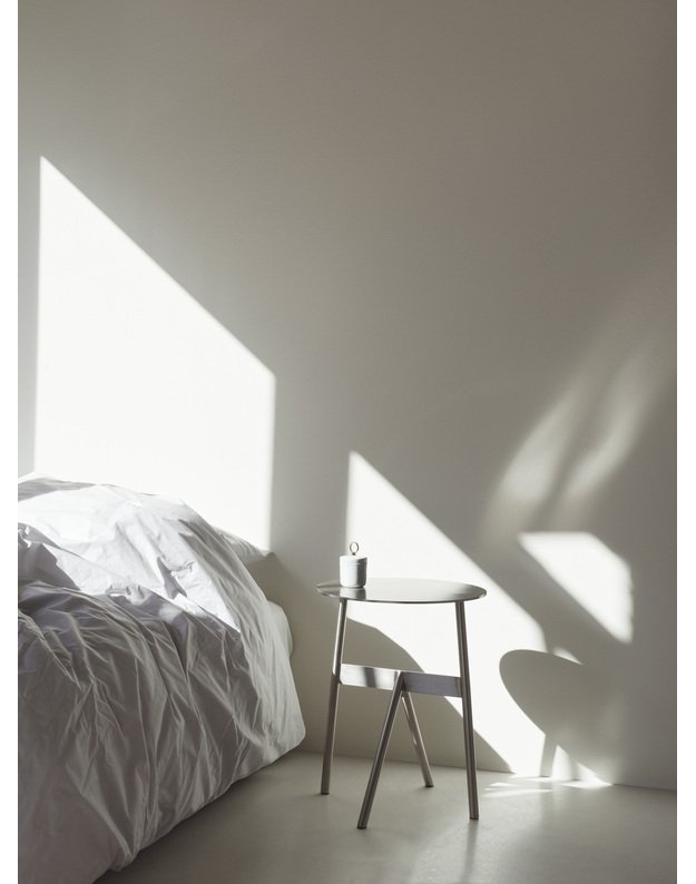 Using the most elementary steel stock parts as their starting point, MSDS Studio has created an architectural little side table. Their design ‘Stock’ presents metal in a raw and deconstructed way, while retaining a delicate, rigid quality. The table’s unconventional leg arrangement emphasises the material’s strength and produces an interesting composition of elements.