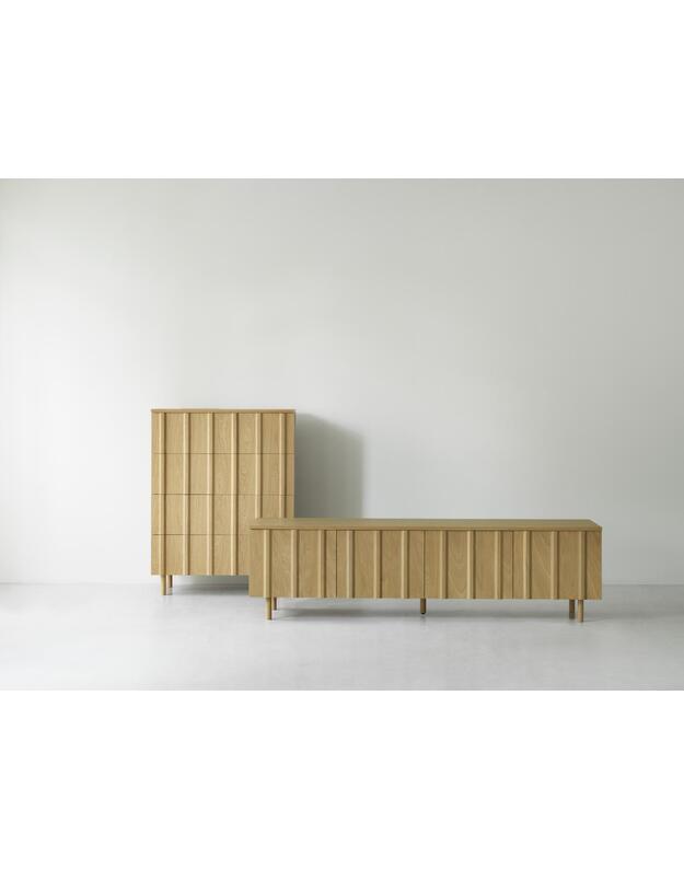Komoda Rib iš Normann Copenhagen kolekcijos. Normann Copenhagen – daugybę tarptautinių dizaino apdovanojimų pelniusi danų baldų kompanija. Normann Copenhagen kolekciją sudaro nepriekaištingos kokybės minimalistinio, žaismingo dizaino baldai, šviestuvai ir aksesuarai.